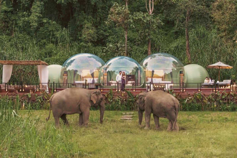 แขกผู้เข้าพักค้างคืนใน จังเกิ้ล บับเบิ้ล ลอดจ์ ยังสามารถรับประสบการณ์ช้างที่ไม่เหมือนใคร ทั้งกิจกรรมพาช้างเดินเล่นท่ามกลางธรรมชาติและหมอกในยามเช้าไปยังริมฝั่งแม่น้ำรวก โดยจะได้เห็นความสนุกของช้างที่เพลิดเพลินกับการอาบน้ำในแม่น้ำ อีกทั้งยังมีกิจกรรมอื่น ๆ ทั้งการจิบเครื่องดื่มพร้อมชมพระอาทิตย์ตกยามเย็นและเรียนรู้เกี่ยวกับสถานการณ์และอนาคตของช้างในประเทศไทยกับผู้เชี่ยวชาญเรื่องช้างของรีสอร์ท และสนุกกับการฝึกโยคะบนดาดฟ้าในช่วงเช้าก่อนเติมพลังด้วยมื้อเช้าที่มีประโยชน์สำหรับการเริ่มต้นวันใหม่ที่สดใส