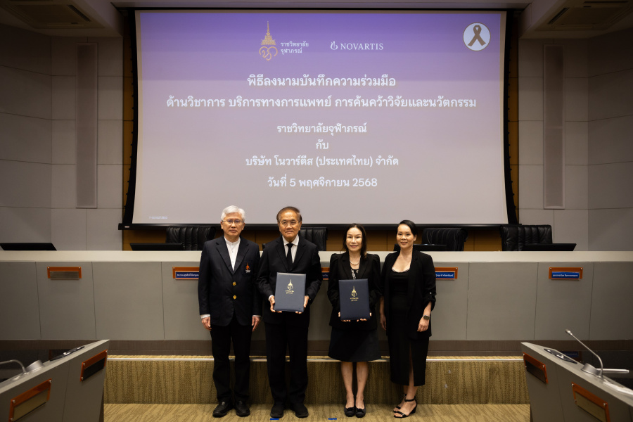 การลงนามร่วมกันในบันทึกข้อตกลงความร่วมมือ (MOU) ทางด้านวิชาการ บริการทางการแพทย์ การค้นคว้าวิจัย และนวัตกรรม ระหว่าง ราชวิทยาลัยจุฬาภรณ์ กับ บริษัท โนวาร์ตีส (ประเทศไทย) จำกัด
