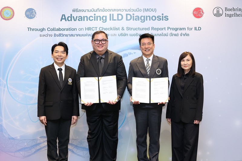 ประเทศไทย 24 พฤศจิกายน 2568 รังสีวิทยาสมาคมแห่งประเทศไทย และ บริษัท เบอริงเกอร์ อินเกลไฮม์ (ไทย) จำกัด เล็งเห็นถึงการยกระดับคุณภาพการวินิจฉัยโรคปอดอินเตอร์สติเชียล (Interstitial Lung Disease) หรือโรคไอแอลดี (ILD) ในประเทศไทยให้เป็นมาตรฐานเดียวกัน จึงได้ลงนาม MOU โครงการ “Advancing ILD Diagnosis” เพื่อร่วมกันพัฒนาเครื่องมือช่วยรายงานผล HRCT (High-Resolution CT หรือการตรวจเอกซเรย์คอมพิวเตอร์ความละเอียดสูงเพื่อวินิจฉัยโรคปอด) พร้อมผลักดันการใช้งานแนวทางการรายงานผล (HRCT Structured Report Template) เพื่อเพิ่มความแม่นยำและสร้างมาตรฐานการวินิจฉัยให้เป็นหนึ่งเดียวกันทั่วประเทศ ยังช่วยลดความคลาดเคลื่อนในการสื่อสารระหว่างแพทย์และรังสีแพทย์ พร้อมทั้งช่วยยกระดับการดูแลผู้ป่วยโรคไอแอลดี ในประเทศให้เข้าถึงการรักษาที่มีประสิทธิภาพอย่างเท่าเทียม