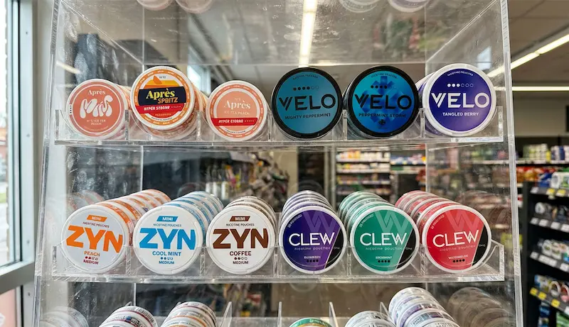 Velo — ซองแบบ slim มีความชื้นเล็กน้อย รสชาติออกตัวไวและชัดเจนกว่า เหมาะคนที่อยากได้ผลเร็ว รสฮิตคือ Mighty Peppermint และ Arctic Grapefruit ราคา 289 บาท
